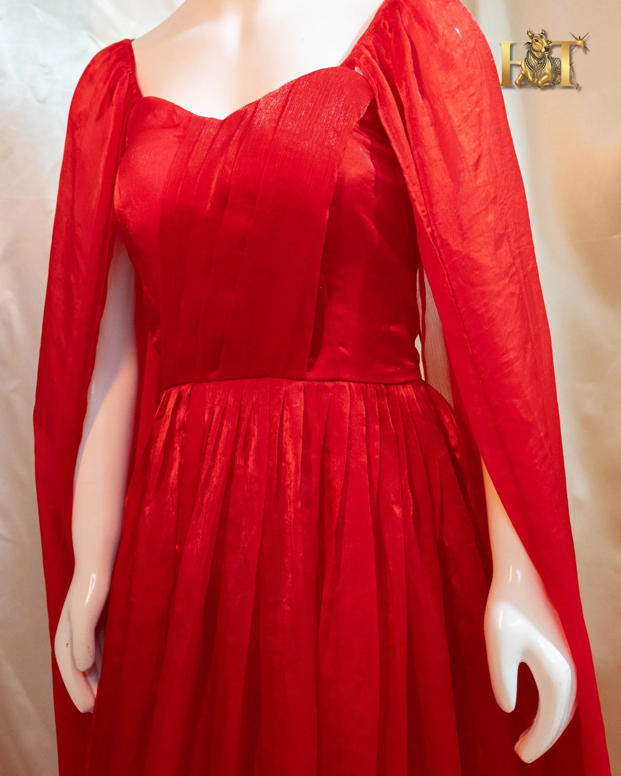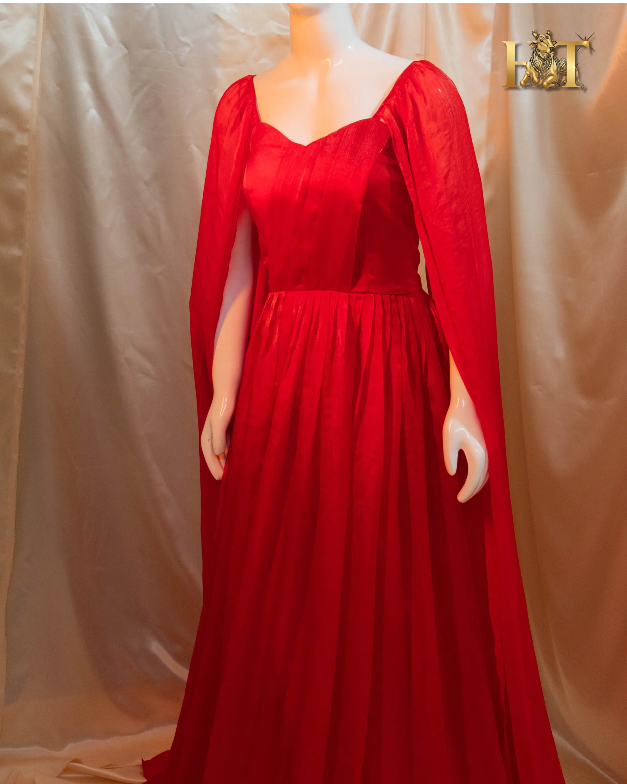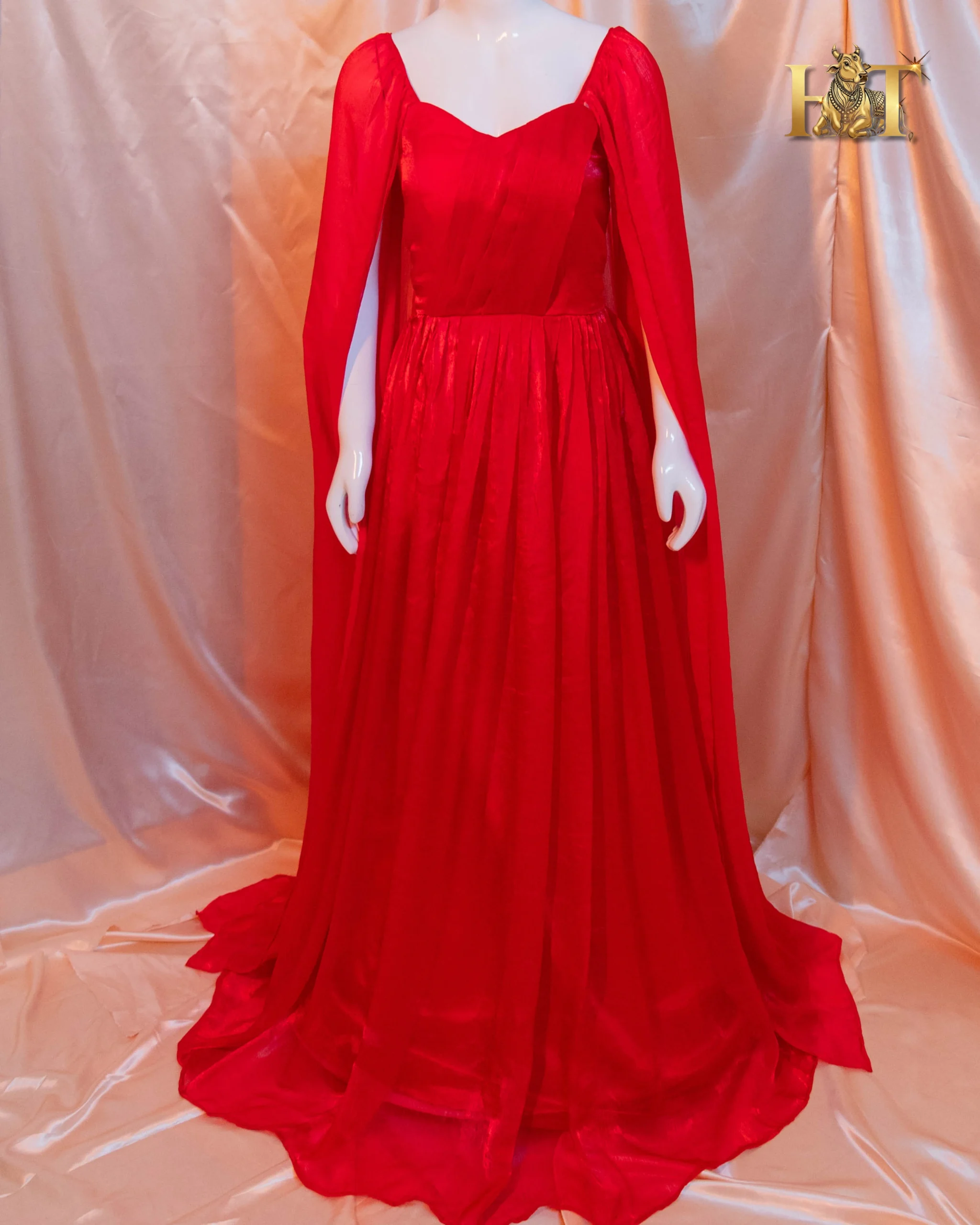 The flared sleeves add drama and fluidity, while the structured bodice and flowing silhouette sculpt an elegant, confident look, perfect for parties, high-end events, or red-carpet appearances.